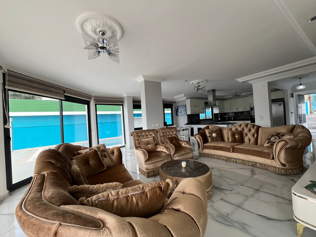 This exclusive detached villa is located in the quiet and green area of Yaylalı, Alanya, about 7 km from the city center and 3 km from the sea.