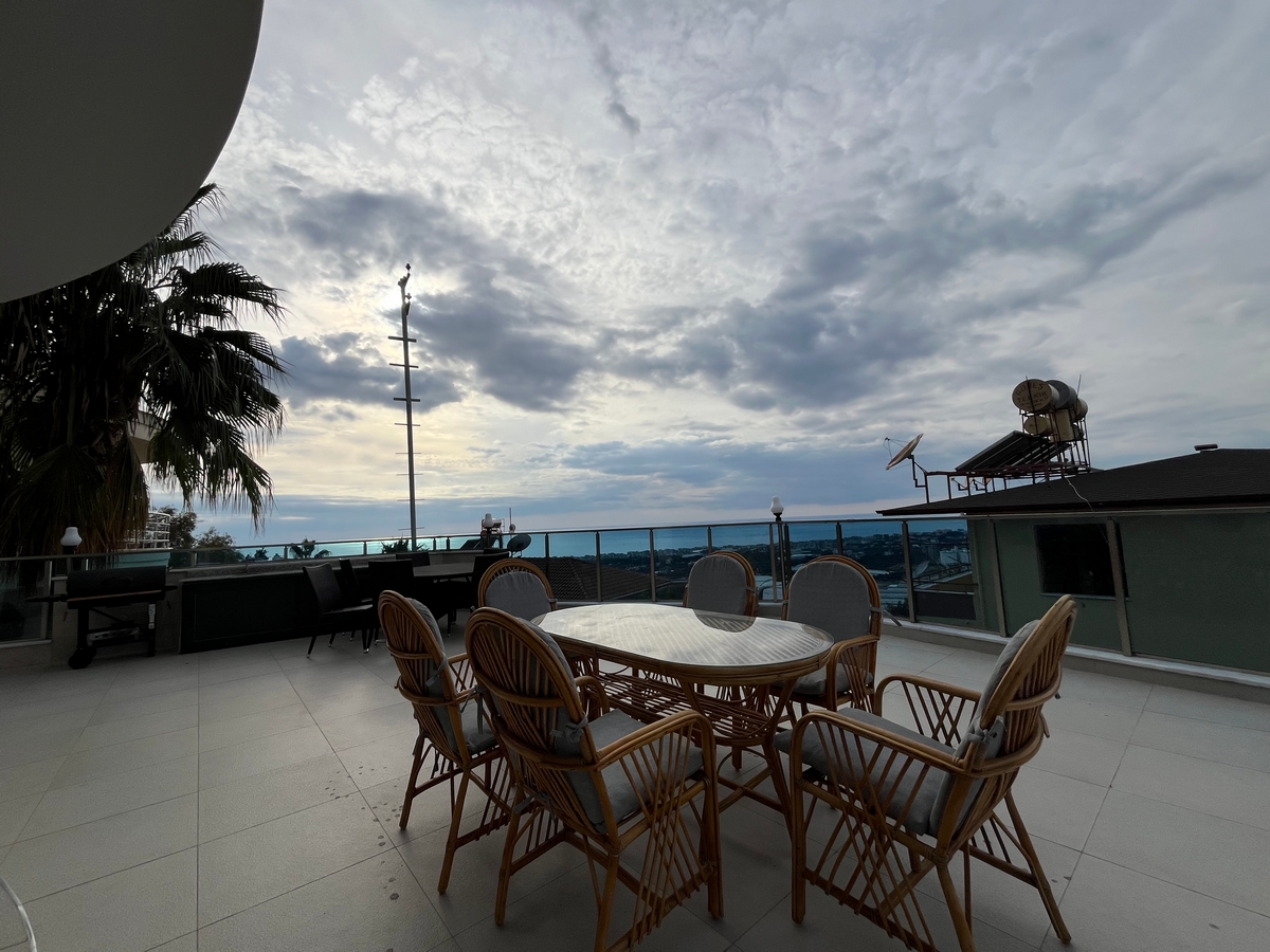 The rooftop also includes a bar area with sink, perfect for sunset views.